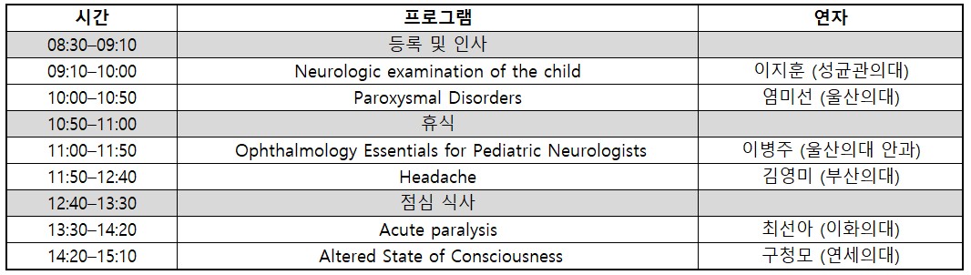 ● 주제: Approach to Signs and Symptoms in Pediatric Neurology