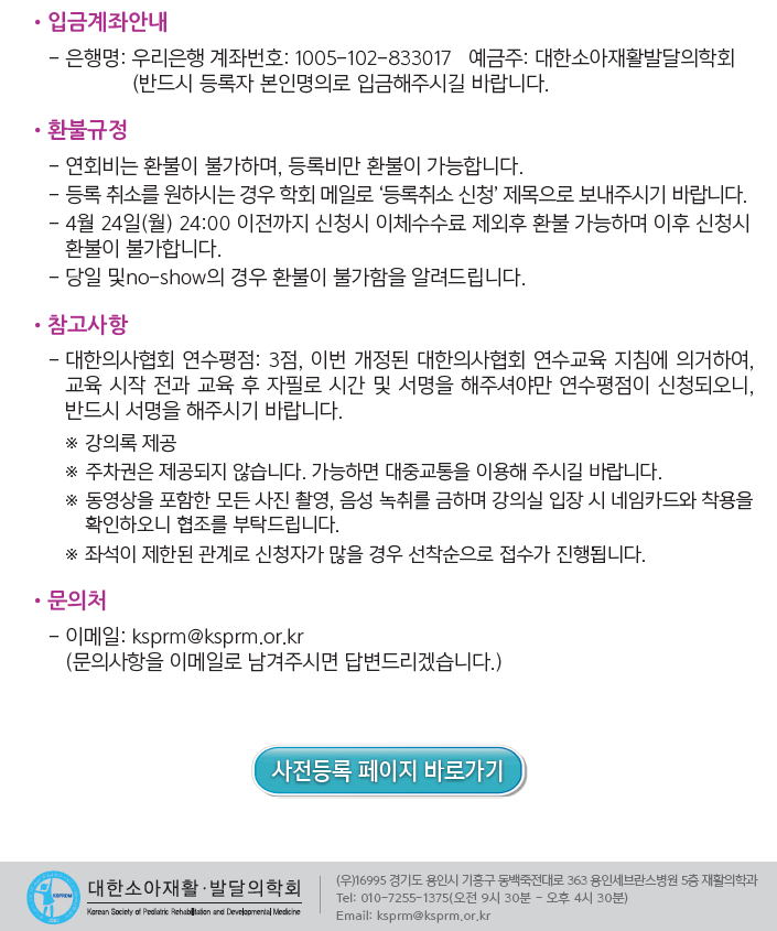 행사명: 2023년 대한소아재활발달의학회 춘계연수강좌