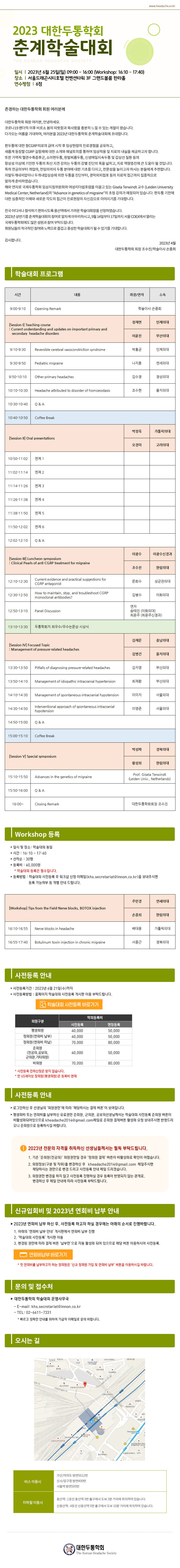 [대한두통학회] 2023 대한두통학회 춘계학술대회 안내