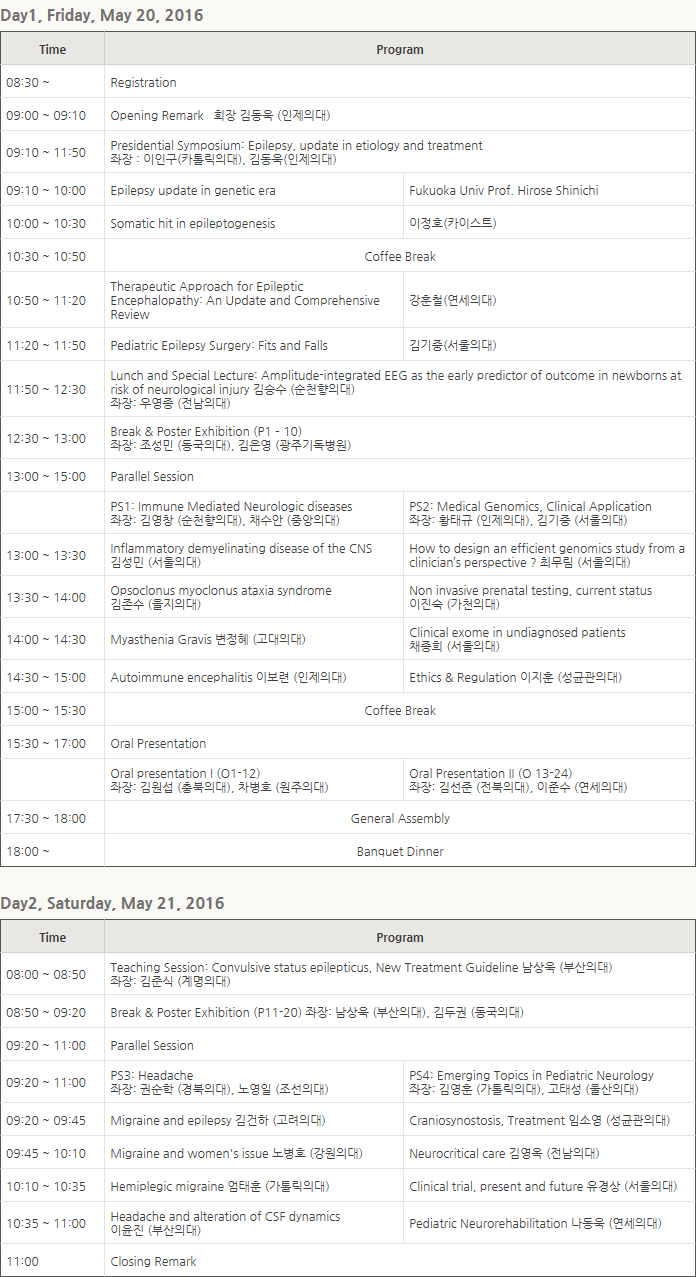 2016년 제44차 대한소아신경학회 학술대회